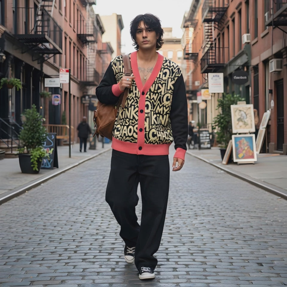 Soft, effortless, and ready for anything—this cardigan is your cozy chaos companion. With a luxe jacquard texture and relaxed silhouette, it’s made for layering over bold looks or lounging. Genderless, season-less, and definitely not basic.