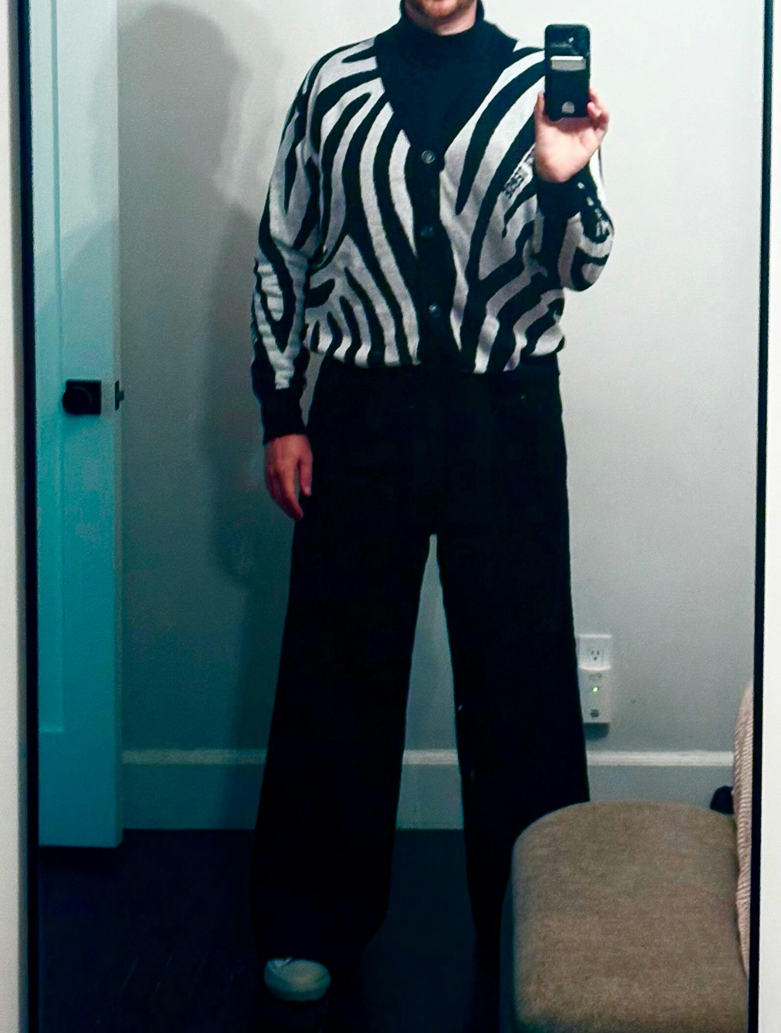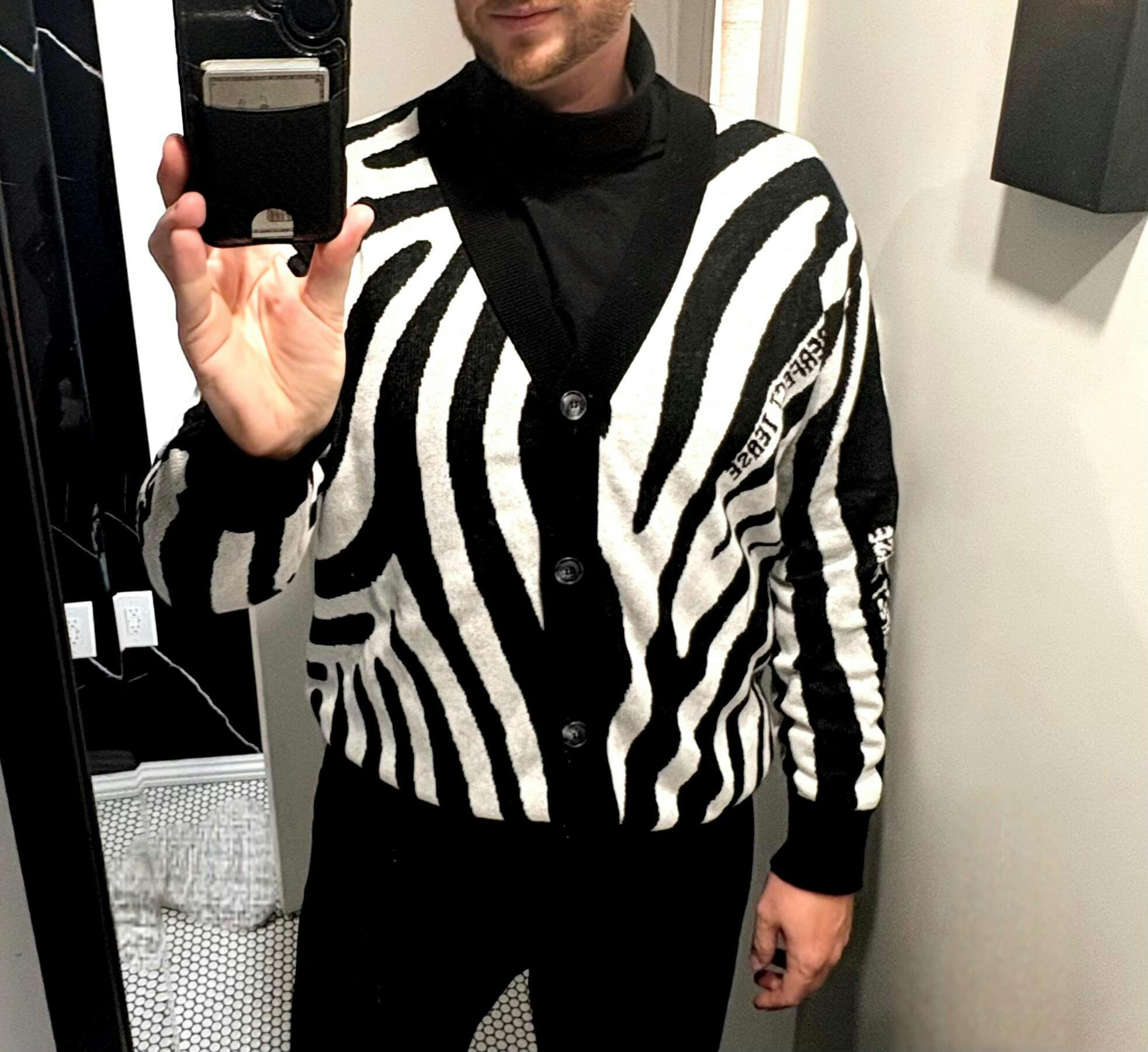 This isn’t your grandma’s cardigan—unless she was a bad bitch with great taste. Featuring an all-over zebra jacquard knit, this cozy-but-bold staple is here to add drama to your layering game. It's soft enough to nap in, loud enough to start rumors, and versatile enough to throw over anything from crop tops to chaos.